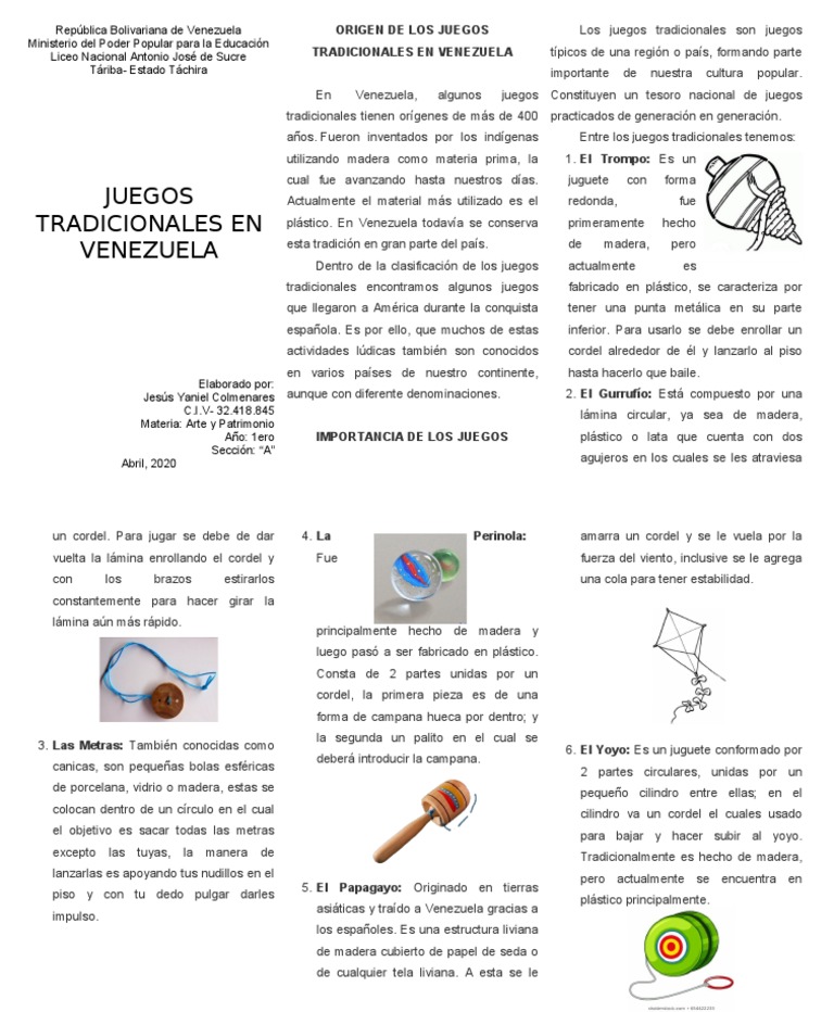 Los juegos tradicionales y populares pertenecen a la época donde no existía la tecnología, niños de todas las edades preferían salir a los parques a jugar con sus amigos en lugar de quedarse en casa con teléfono celular. Las canicas son bolitas de vidrio, o de otro material cristalino, que se emplean en un juego que. Juegos tradicionales los juegos tradicionale. Te presentamos una amplia galería de dibujos y láminas de juegos tradicionales para que puedas elegir la que más te gusta para desarrollar sobre el lienzo virtual tus inspiradas dotes pictóricas. Atrévete a ser niño otra vez! Este juego no es propiamente desarrollado por ecuador, pues el mismo es un tipo de juego que realmente se extendió por toda latinoamérica, aun así, sigue siendo una de las recreaciones principales de la cultura de los. Top de los juegos tradicionales más conocidos en el país: . juegos tradicionales del ecuador es importante considerar y rescatar los juegos tradicionales de nuestro país, reconsiderando que son juegos divertidos que han sido transmitidos de generación en generación, de abuelos a padres y de padres a hijos y así sucesivamente y que aparte. Copyright documents similar to juegos tradicionales del ecuador. Pero sí enlistaremos los más populares Los juegos tradicionales de ecuador sobreviven al paso de la tecnología y reflejan la creatividad de las comunidades. Los juegos tradicionales ecuatorianos que se han realizado son con la finalidad de que la tradición perdure y que a su ves sea transmitida tecnológicamente o de forma participativa, tanto a publico externo ya sean de países diferentes como para educadoras de nuestro país. Lista de juegos tradicionales del ecuador y sus características.